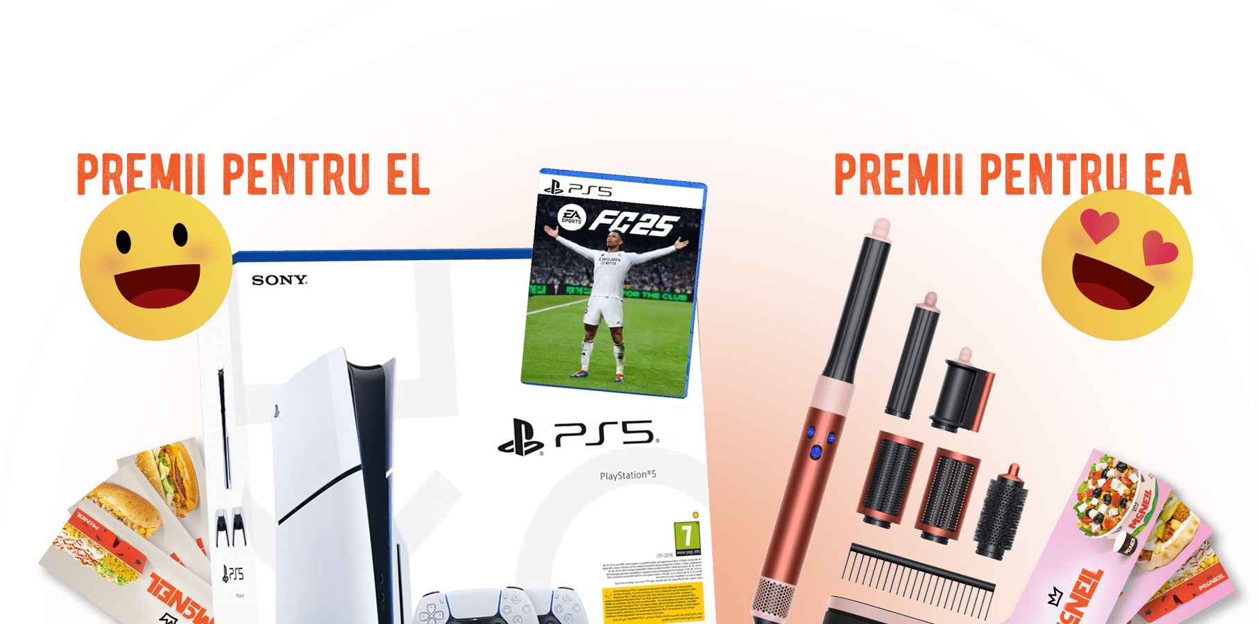 - Locul 1: Consolă PS5, cu unitate de disc, 2 controlere + joc FC25.